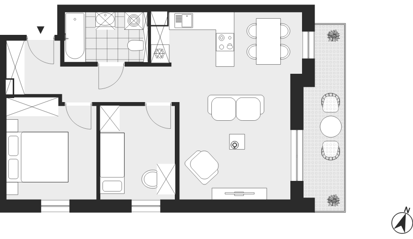 Zapraszamy do zapoznania się z ofertą 2-pokojowego mieszkania składającego się z pokoju dziennego z aneksem kuchennym, sypialni, łazienki i balkonu.