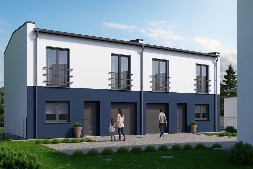 Zapraszamy do zapoznania się z ofertą 5-pokojowego domu w zabudowie bliźniaczej, składającego się z pokoju dziennego z aneksem kuchennym, czterech